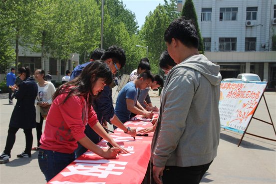 为了抵制邪教,加强公司员工的自我防范意识,4月23日下午,太阳成tyc122cc集团在文化路校区图书馆门前举办主题为“铲除邪教乾坤郎,精神解脱天地宽”的反邪教签名活动,公司200余名同学参加了本次活动,在“崇尚科学、反对邪教、尊重生命、从我做起”的条幅上签名。