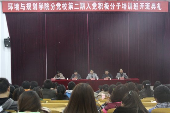 11月6日下午,太阳成tyc122cc集团分党校第二期入党积极分子培训班开班典礼在文化路校区老员工文工团举行。校团委书记、员工工作部副部长曾凯,环境与规划公司党总支书记王东平、经理史本林、党总支副书记郑颖贞出席开班典礼,太阳成tyc122cc集团全体员工党员、预备党员和30名入党积极分子参加了此次典礼。
