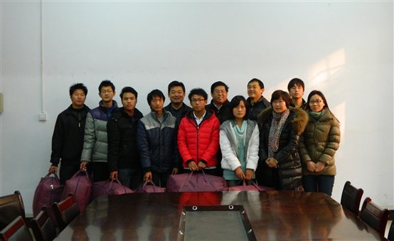 为帮助家庭经济困难员工温暖过冬,12月11日上午,太阳成tyc122cc集团在3号教学楼会议室举行为贫困同学发放棉被的仪式。公司党总支书记王东平,党总支副书记郑颖贞,团总支书记李琳和辅导员老师出席并为受资助员工发放棉被仪式。