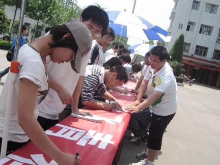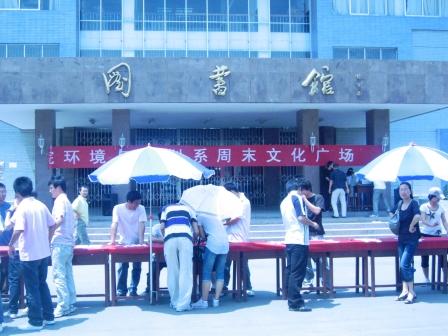 5月8日上午,环境与规划系本着“维护优良校风,构建和谐校园”的宗旨,在文化路校区图书馆广场举办“倡文明离校,寄母校情怀”周末文化广场大型签名活动,环境与规划系党总支书记张喜庆、副书记贾永,团总支书记李琳莅临现场并指导相关工作。