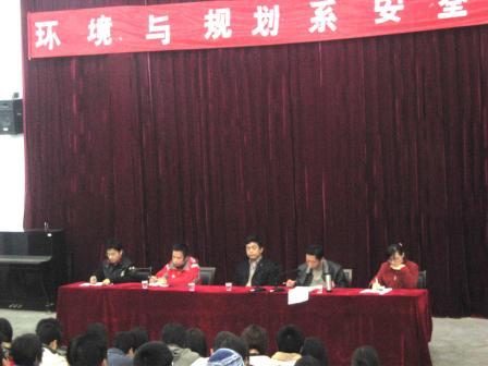 会上,环境与规划系党总支副书记贾永列举了国内部分高校近期发生的安全事故,阐述了事故发生的原因,指出了环境与规划系目前存在的上网、外宿晚归、交通安全、用电安全等十一项安全问题,进一步强调了安全文明工作的重要性,并宣布了本系加强安全管理的有关措施。