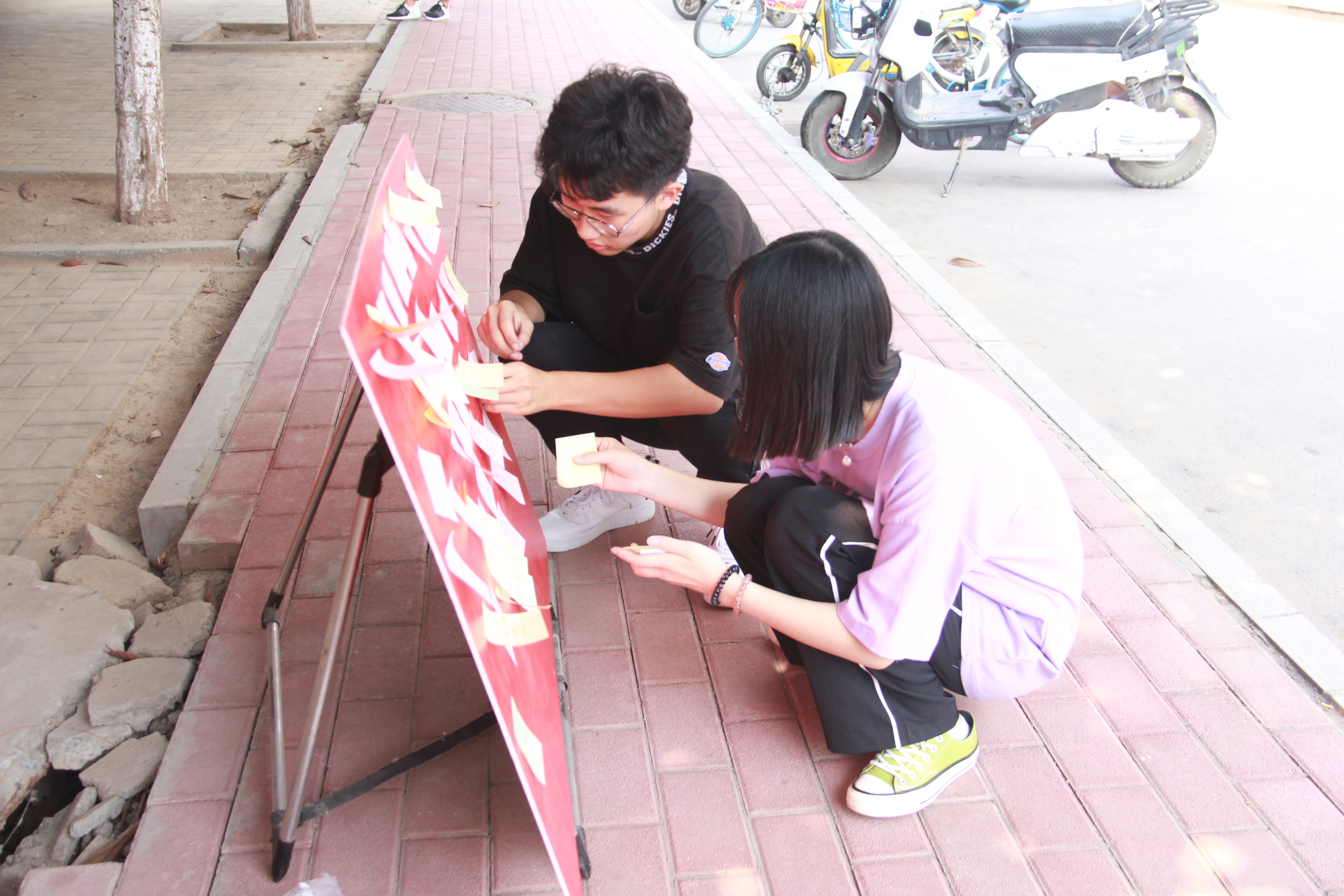 活动现场,同学们纷纷驻足,把对祖国的美好祝愿、殷殷情怀诉诸笔端,表达对祖国最真挚的祝福。小小的便利贴成为他们与祖国母亲交流的信函,同学们用最朴实、真挚的言语,传递自己的对祖国的感恩与热爱。随后,工作人员将征集到的祝福语向全校展示。
