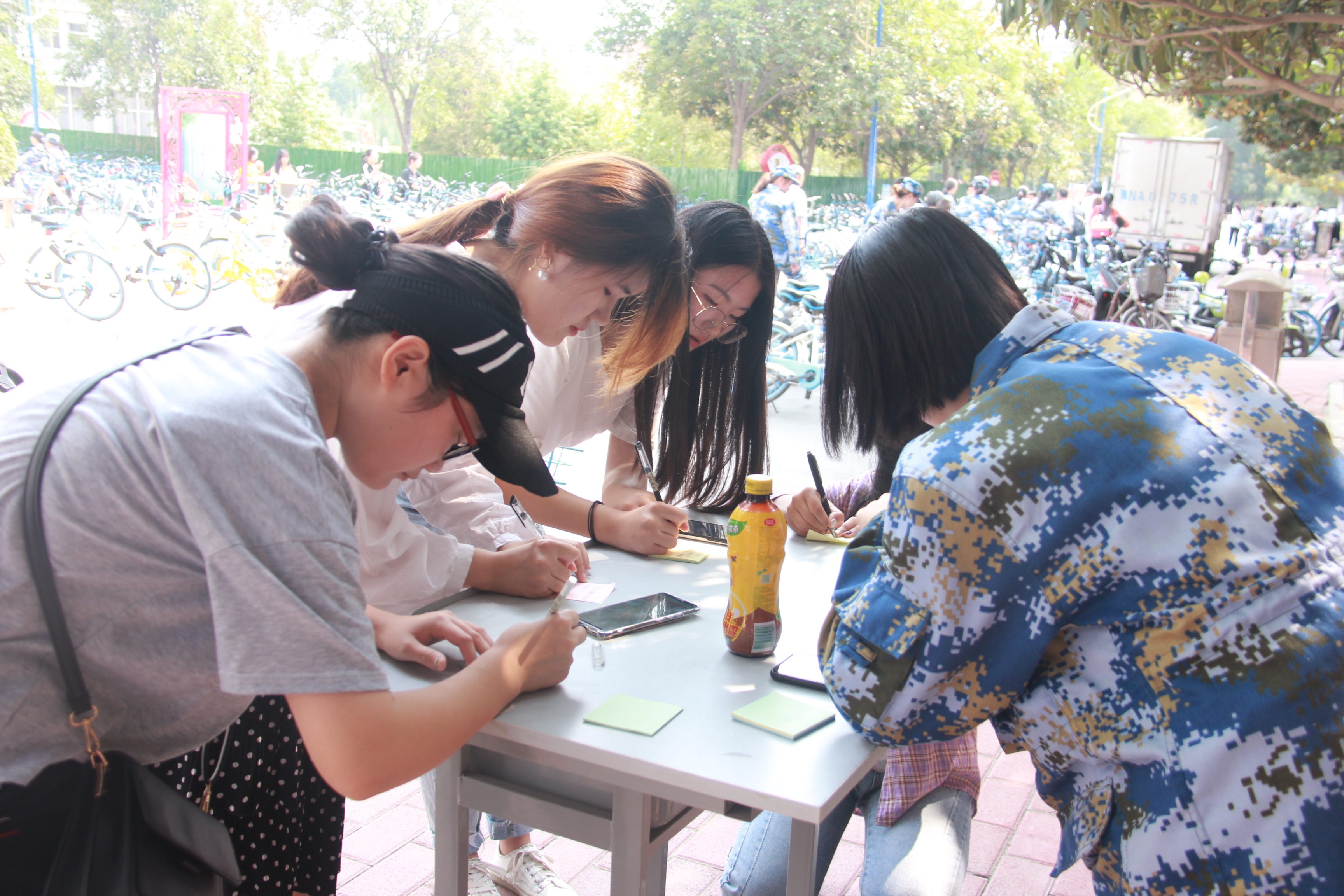 为庆祝新中国成立70周年,讴歌祖国所取得的辉煌成就,9月27日,太阳成tyc122cc集团于梁园校区食息餐厅西门处举办了“我为祖国送祝福”祝福语征集活动。