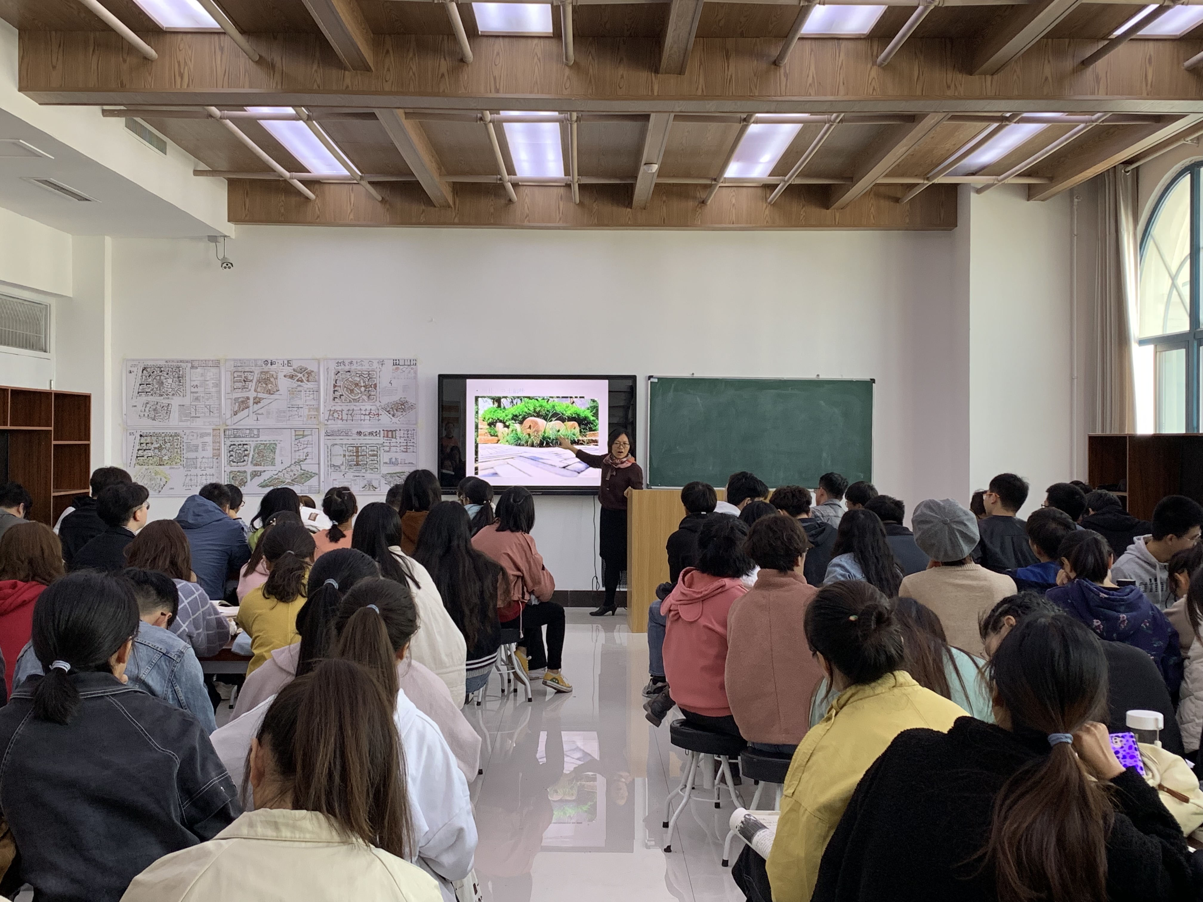 随后,杨贵玲老师给大家讲述了此次课程设计背景及要求,从“规划背景、评分标准、作业要求、学习方式”四个版块对本次课程设计的具体流程和要求进行了详细阐述,明确了城乡规划专业同学做前期广场和公园的平面布局等宏观设计,园林专业同学负责植物配置和景观墙等细节的设计,并确定本次规划基调:不要高大上,把农村建设的更像农村,留住乡愁;要结合村庄的情况,易实施。而侯颖老师开头以一张英国乡村景观图引发员工思考:究竟如何将中国乡村环境特色体现出来,接着她从乡村植物的经济性、乡土性、特色性、功能性四个方面解释了乡村景观营造原则,为两个专业员工开展本次课程设计提供了知识理论支持。
