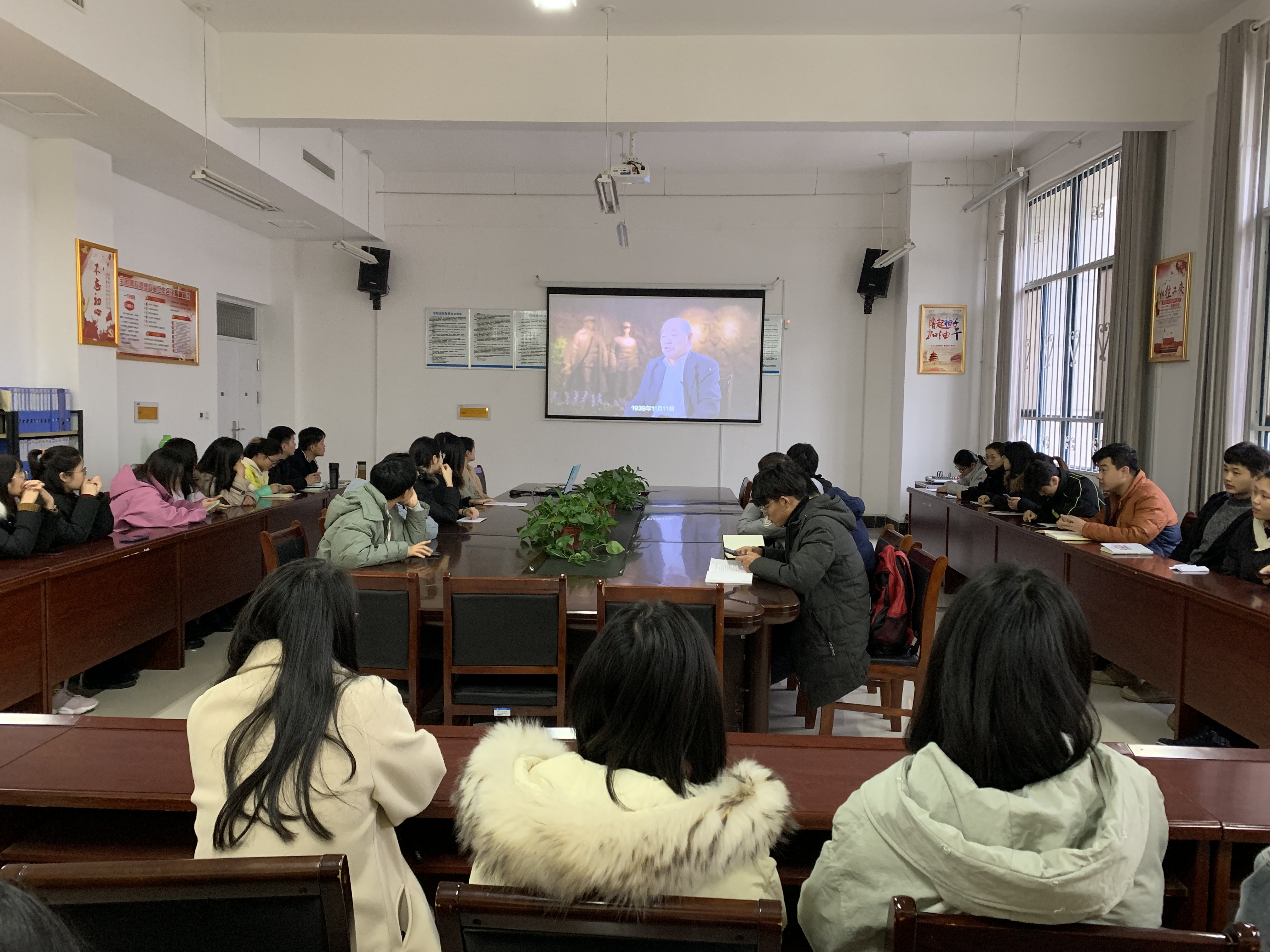 为深入学习习近平总书记视察河南省重要讲话和贯彻落实党的十九届四中全会精神,12月24日,太阳成tyc122cc集团员工党支部于梁园校区组织集中学习观看红色微视频《追寻》,并开展交流讨论。