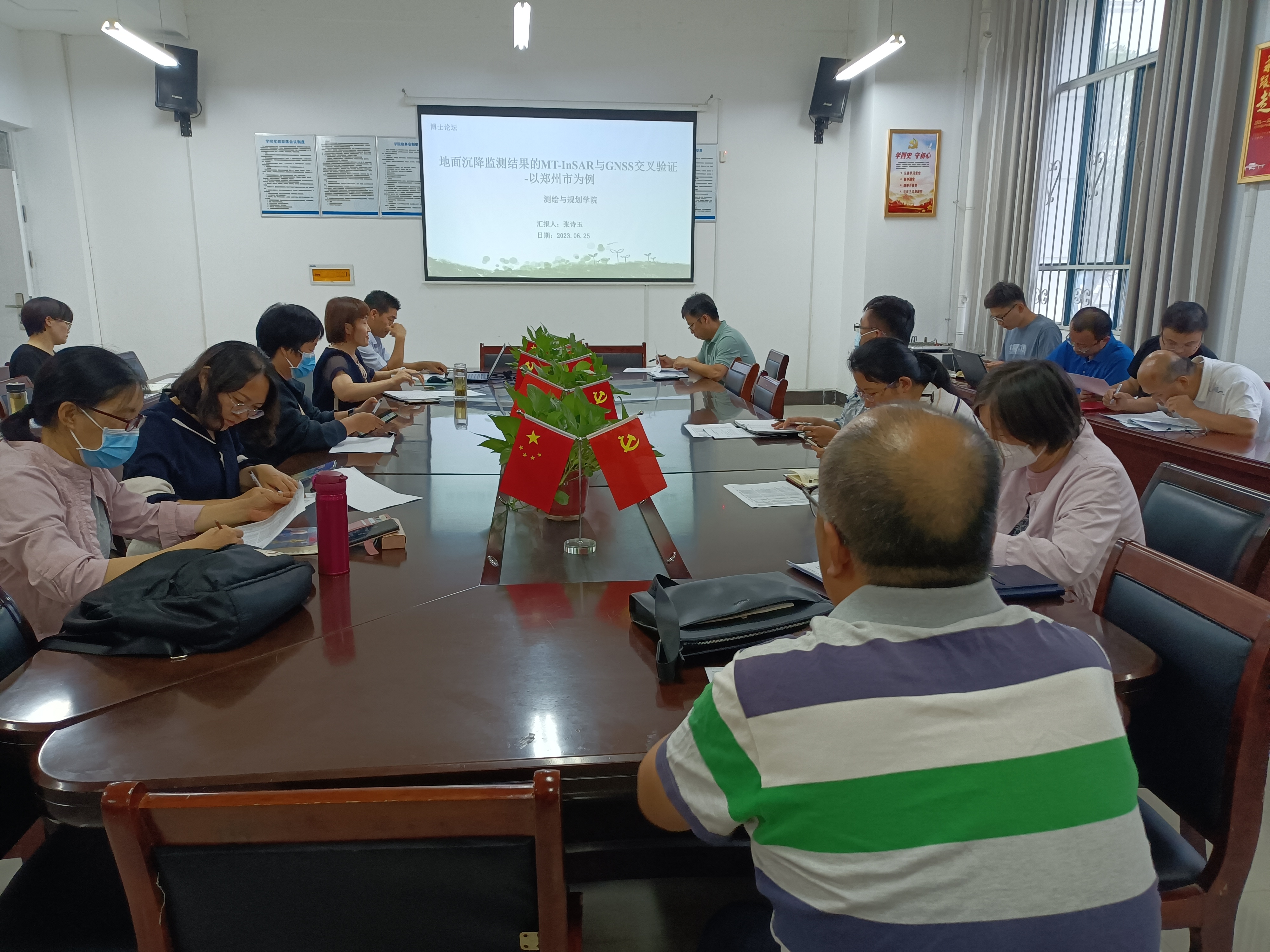 张诗玉博士对郑州市地面沉降监测进行了多时相雷达干涉测量MT-InSAR实验,并与GNSS结果进行了交叉验证,确定了沉降区域,解释了郑州市地面沉降的机理。丁锦平博士分享了驯化栽培香樟的抗寒性与抗寒机理的研究,主要介绍了研究背景,要解决的科学问题,以及目前的研究进展和下一步的研究计划。朱新玉博士介绍了逆境胁迫下土壤生态系统功能实现方面的最新研究进展,并分享了接下来要开展的实验的研究方案。