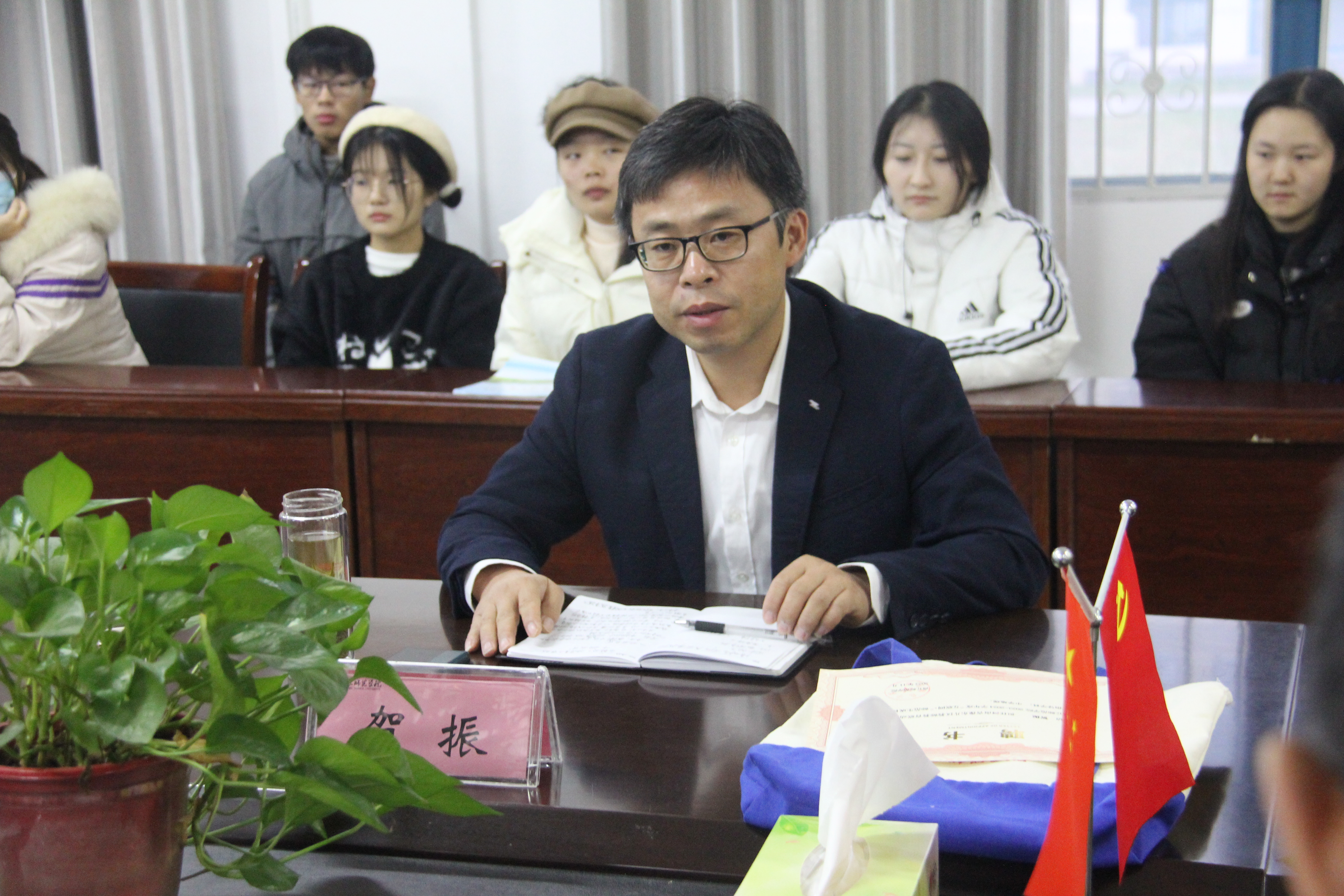 首先,贺振介绍了地理科学专业的整体发展情况,并宣读2023-2024学年中学地理“互联网+”师范生技能培训工作计划,希望同学们抓住机会,多思勤问、虚心请教、深度思考,结合自己特长优点,多展现,多实践,保持积极的态度,提升自己公司产品技能。