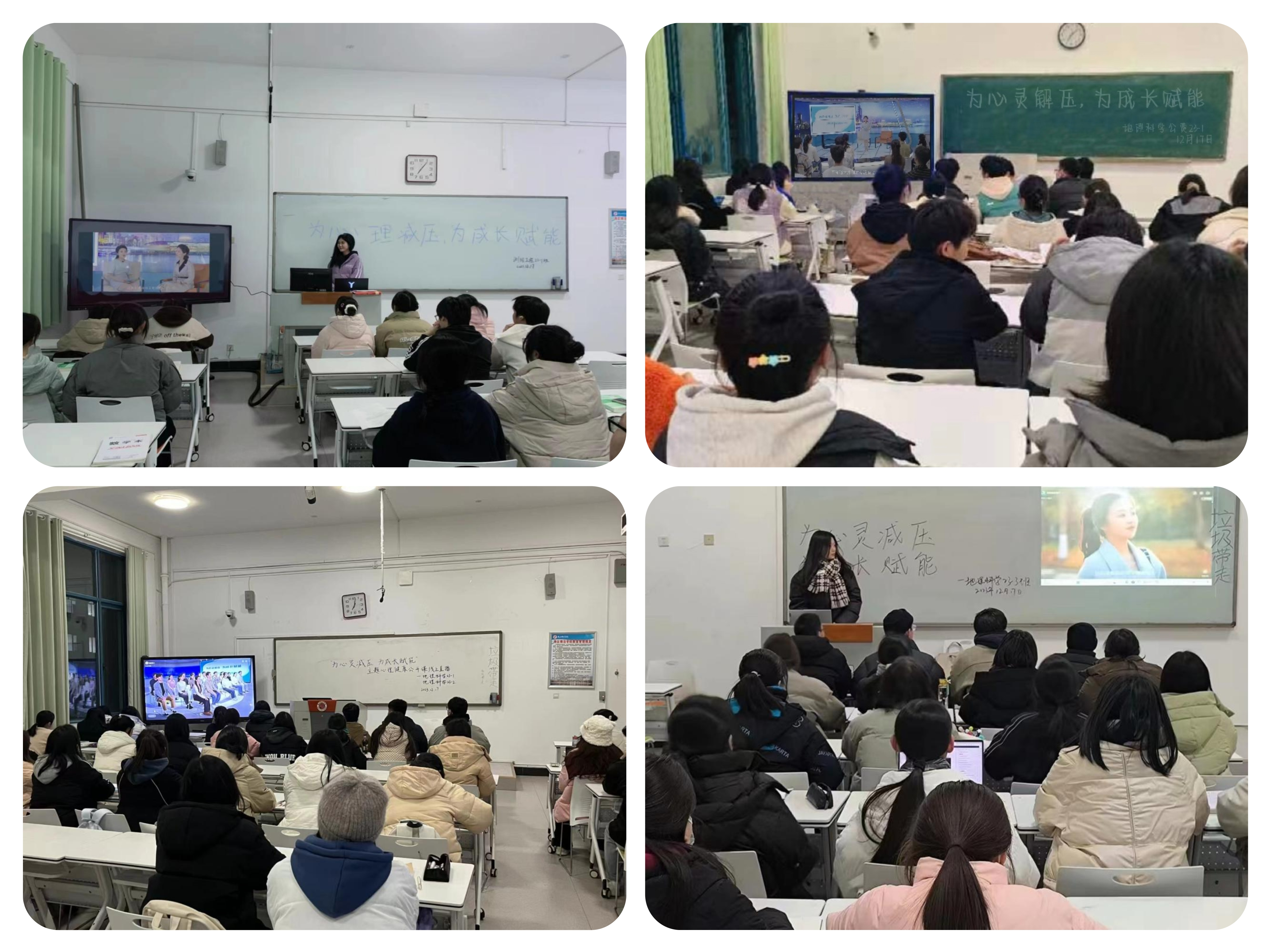 12月17日,太阳成tyc122cc集团组织大一大二员工于晚自习教室集中观看了河南省教育厅举办的“为心灵解压 为成长赋能”主题心理健康公开课。