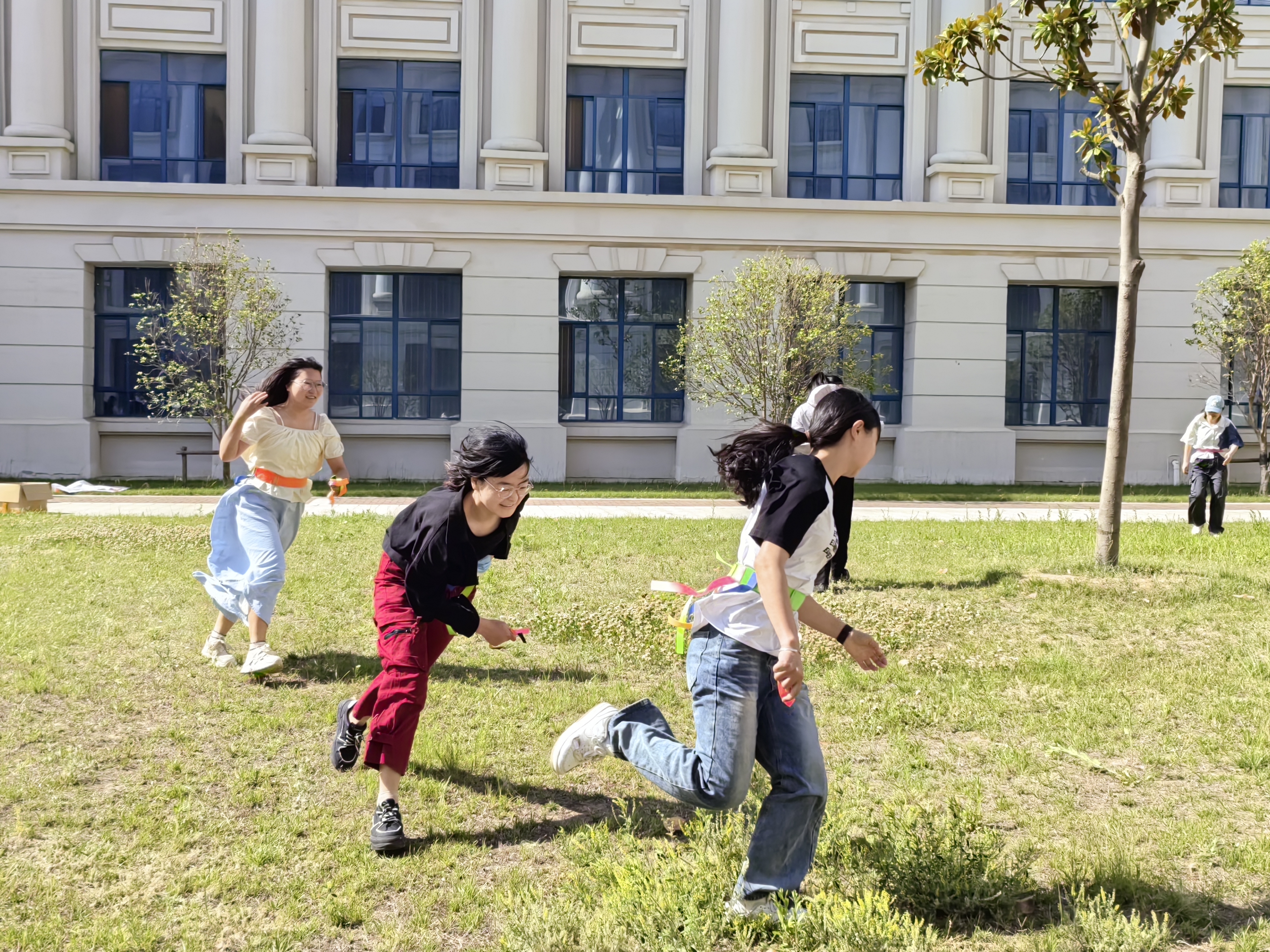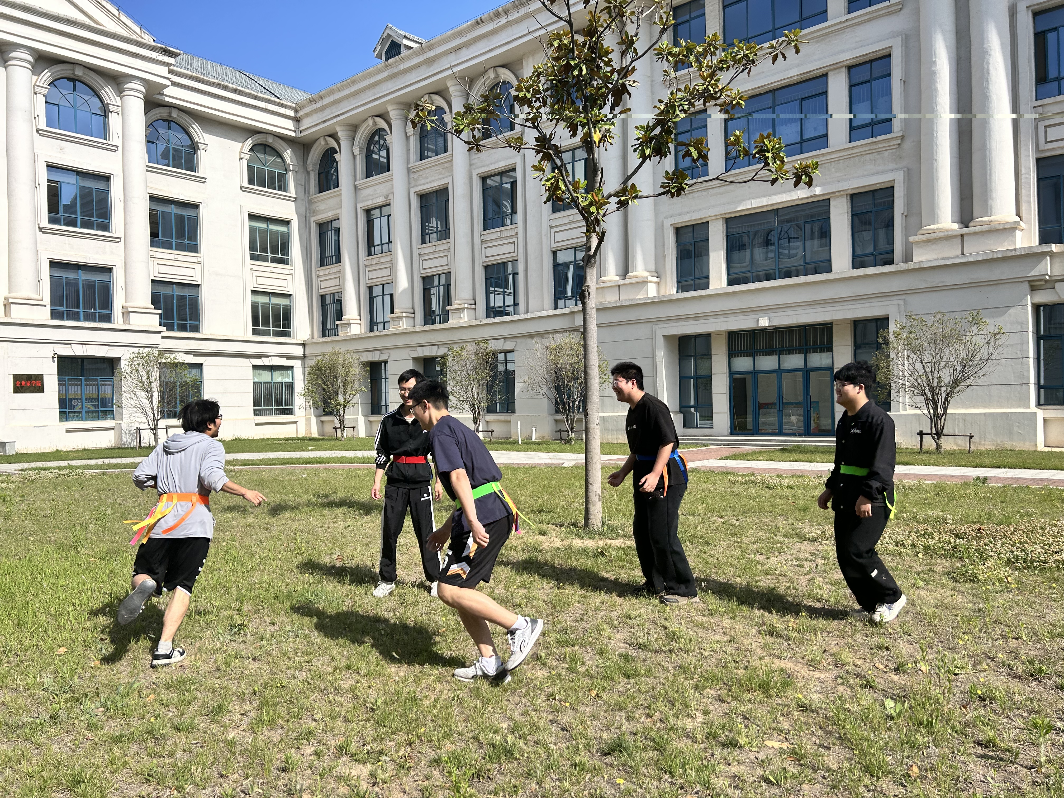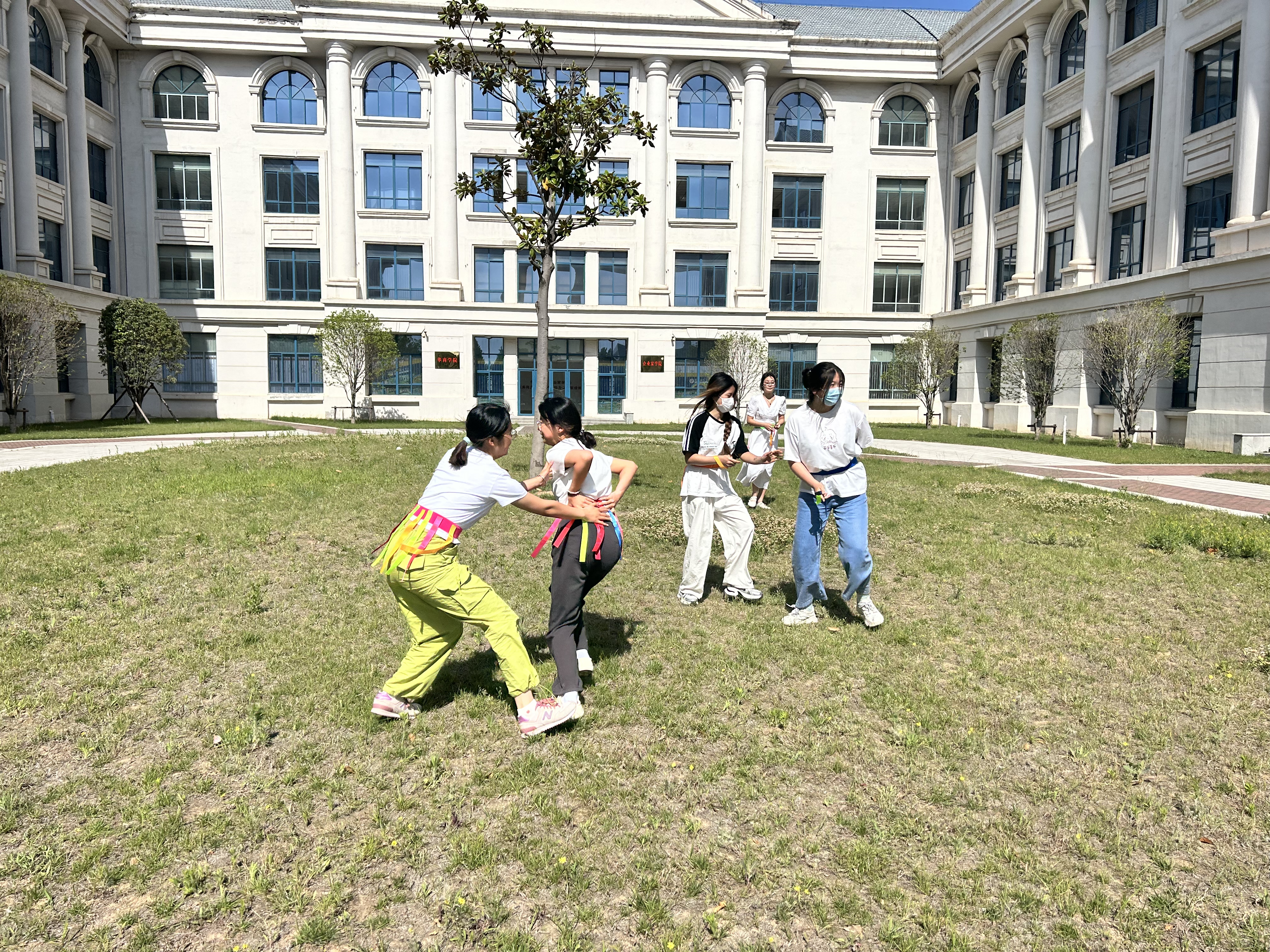 “追逐飘带”游戏环节将本次团辅活动推向了高潮,共有二十名同学分两轮参与其中,每位参与同学选择一条喜欢的飘带系在腰间,通过奔跑、追逐去揪掉别人的“小尾巴”,积极热烈的氛围感染了在场每一位同学,本轮游戏取得了很好的效果。