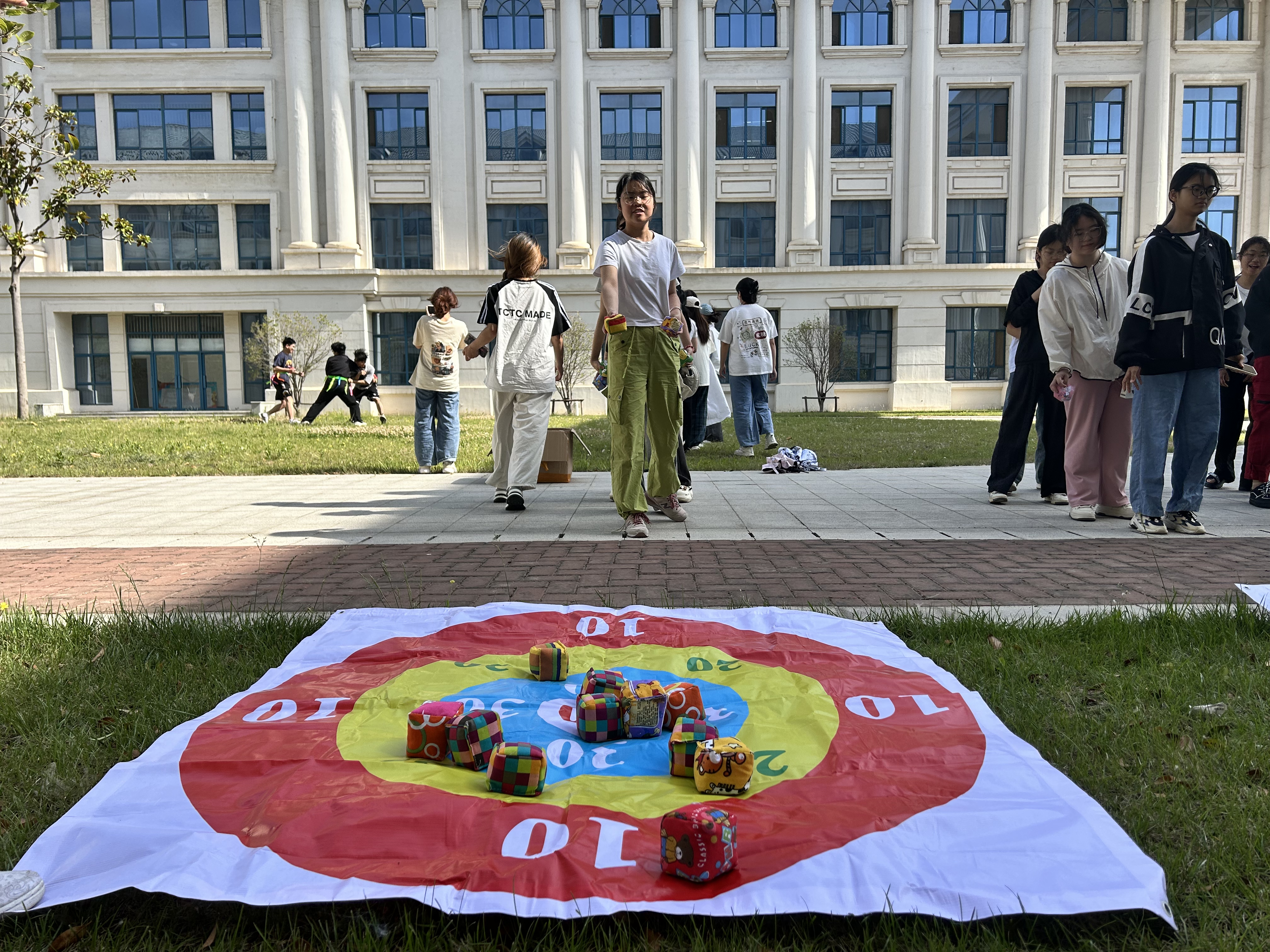 活动伊始,为唤醒同学们参与活动的积极性,在主持人介绍游戏规则后,第一轮趣味丢沙包投掷盘团建活动正式开始,全班员工分为两队,逐一向积分盘投掷沙包,随着大家的积极参与,现场气氛逐渐活跃起来。