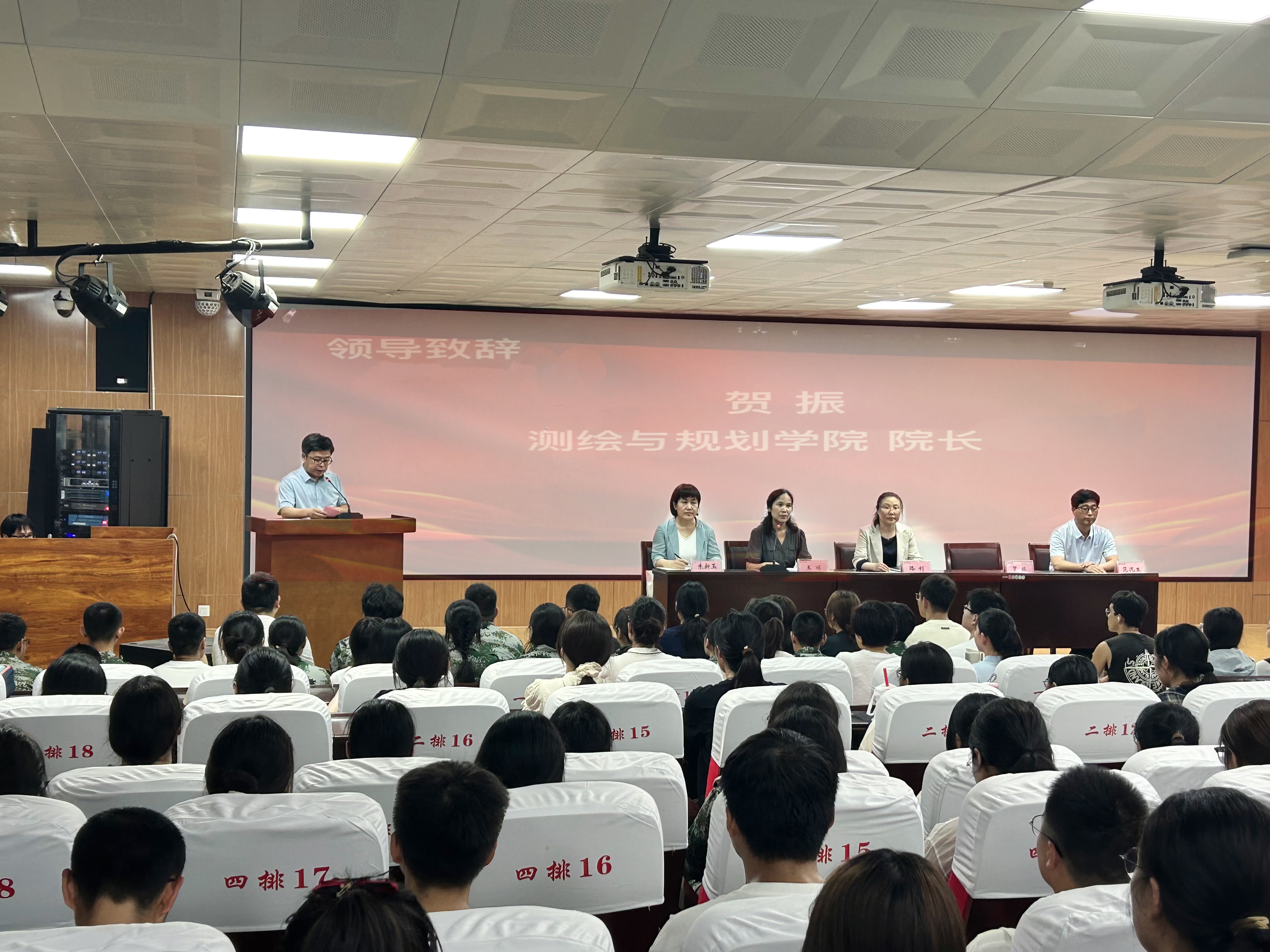 典礼在庄严的国歌声中拉开序幕。首先,贺振致辞,他代表全院师生向2024级新同学的到来表示热烈欢迎,同时寄语新生们珍惜大学时光,努力学习,全面发展,为实现自己的梦想打下坚实的基础。教师代表袁月分享了自己在教学科研中的感悟,鼓励新生们积极面对未来的挑战,勇于探索未知领域。随后,2013级员工韩刘伟博士用自己的求学经历激励了在场的每一位新生,为新生们树立了良好的榜样。新生代表杨丰荧表达了对老员工活的期待与憧憬。