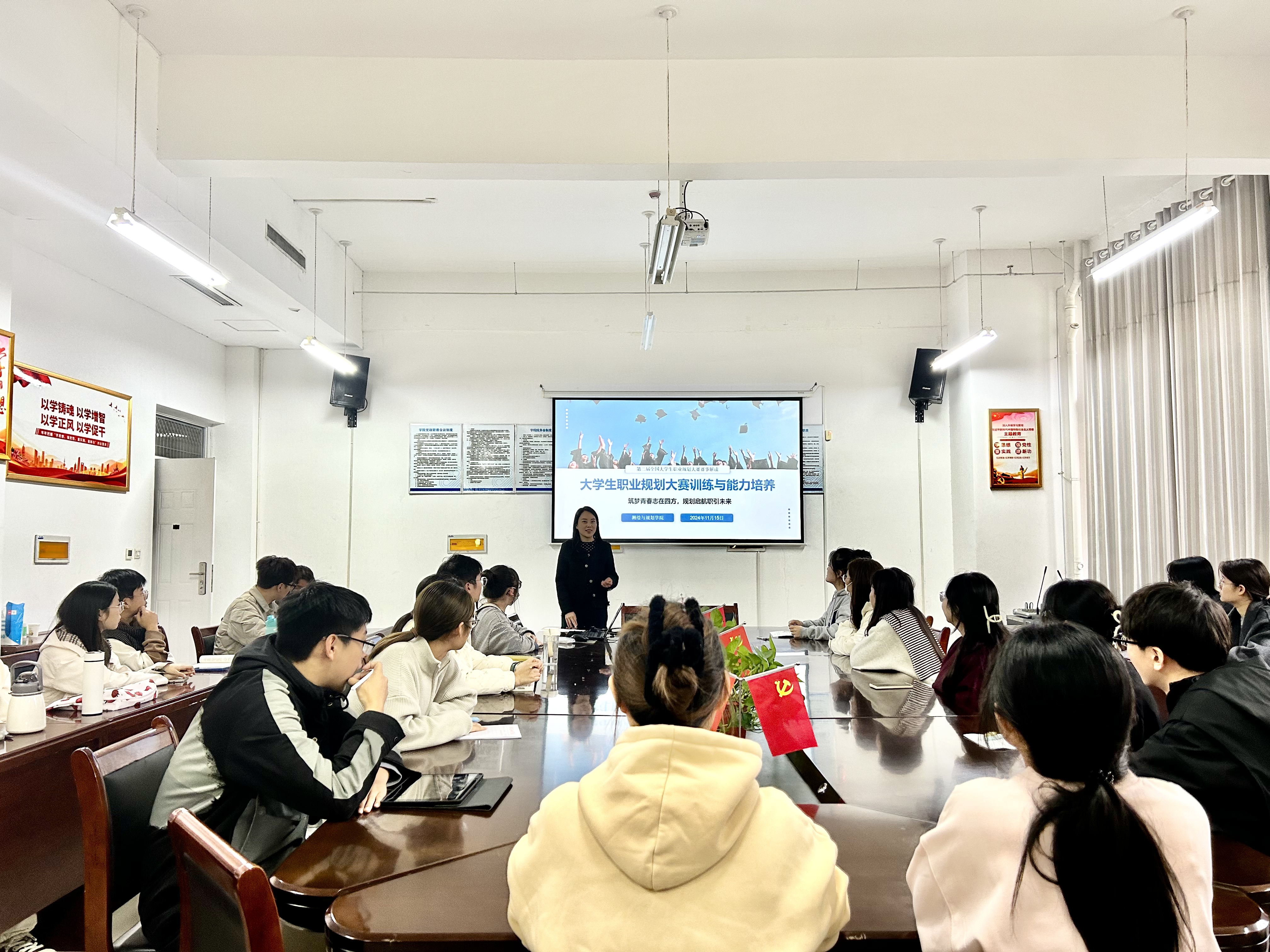为教育引导公司广大学子找准职业定位,做好职业规划,11月15日中午,公司在三商楼133会议室举办第二届全国老员工职业规划大赛赛前培训。本次培训由2022级辅导员王昊昊主讲,同时邀请第一届全国老员工职业规划大赛省赛成长赛道银奖获得者张萱宇和就业赛道银奖获得者曾哲进行共享交流,各年级员工代表参加培训。