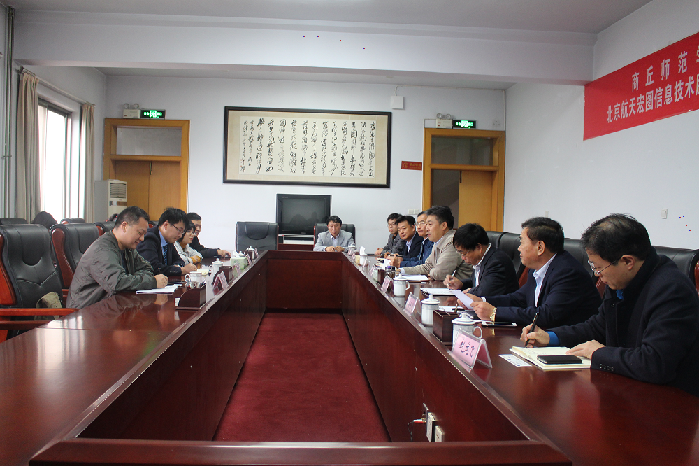 刘东升副总裁代表北京航天宏图技术股份有限公司董事会对公司表示感谢。他介绍了公司的基本情况,提出了建立员工实习基地,共建遥感测绘大数据中心,开展学术交流等合作方式。他希望发挥各自优势,确保校企合作质量,使双方形成互利共赢的合作新模式。